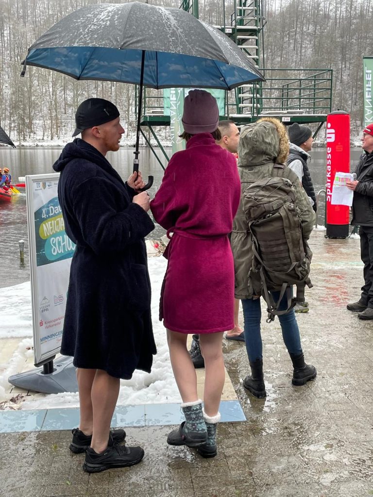Am 5. Januar fand das 4. Dauner Neujahrsschwimmen im malerischen Gemündener Maar statt. Erneut sorgten wir der Inner Wheel Club Vulkaneifel gemeinsam mit der Bundeswehr Daun und Rotary Club Vulkaneifel für das leibliche Wohl der Teilnehmer und Zuschauer. Bei Schnee und Eis sprangen tapfere Teilnehmer in das eiskalte Wasser. Die Einnahmen aus den Startgeldern werden, wie in den vergangenen Jahren, für einen guten Zweck verwendet. Für die Sicherheit der Schwimmer sorgten die Mitglieder der DLRG-Ortsgruppe Schweich sowie das Deutsche Rote Kreuz Ortsverein Daun. Ein gelungenes Event, das Sport und Gemeinschaftsgeist vereinte! Und für uns eine kleine Tradition die jedes neue Jahr beginnen lässt!