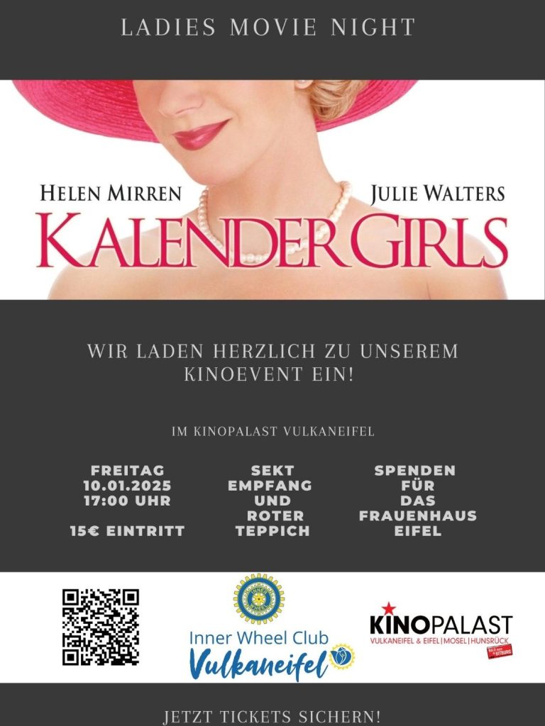 Am Freitag, dem 10.01.2025 fand im Kinopalast Vulkaneifel das mit Spannung erwartete Kinoevent zur Aufführung des Films „Calendar Girls“ statt. Die Veranstaltung, organisiert vom Inner Wheel Club, war reichlich besucht und zog zahlreiche Gäste an.
